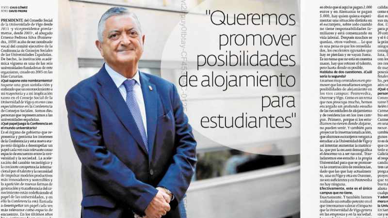 O 29 de marzo o xornal de Pontevedra publica unha entrevista ao presidente do Consello Social da Universidade de Vigo e novo membro do comité executivo da Conferencia de Consejos Sociales de Universidades Españolas, Ernesto Pedrosa.